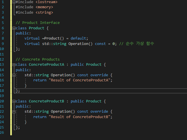 | [C++] 추상 팩토리 (Abstract Factory) 패턴 사용 설명 및 예제 (0) | 2024.11.20 |