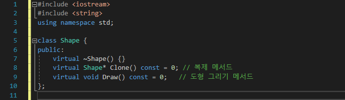 - Shape는 복제 가능한 모든 도형의 공통 인터페이스입니다.