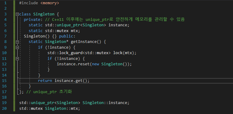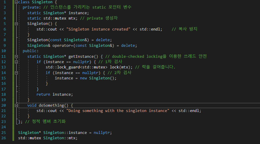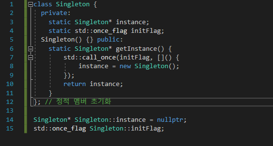 | [C++] 싱글턴 (Singleton) 설명 및 사용 예제 (0) | 2024.11.14 |