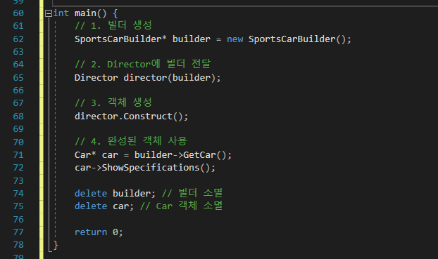 | [C++] 빌더 (Builder) 패턴 사용 설명 및 예제 (0) | 2024.11.21 |